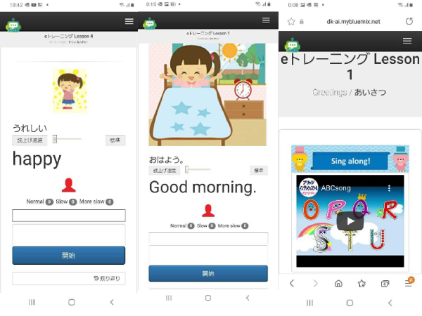 VRの英語教室以外にも、各ご家庭で予習や復習が可能な専用アプリを開発。今後も続々と開発予定です。