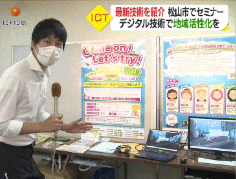 ≪えひめICTセミナー≫では、当社の製品の紹介や、Bridge English Schoolのセミナーを開催いたしました。各テレビ局や新聞で大きく取り上げられ話題となりました。